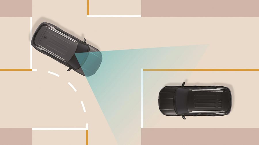 Khi có tín hiệu chuyển làn, nếu tiềm ẩn nguy hiểm va chạm phía hông xe, hệ thống sẽ đưa ra cảnh báo. Nếu sau tín hiệu cảnh báo, nguy hiểm gia tăng, hệ thống sẽ kiểm soát để phòng tránh va chạm.