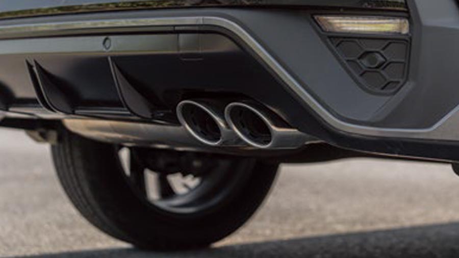 Các đường nét đặc trưng táo bạo và vòm bánh sau lớn củng cố phong cách thể thao.