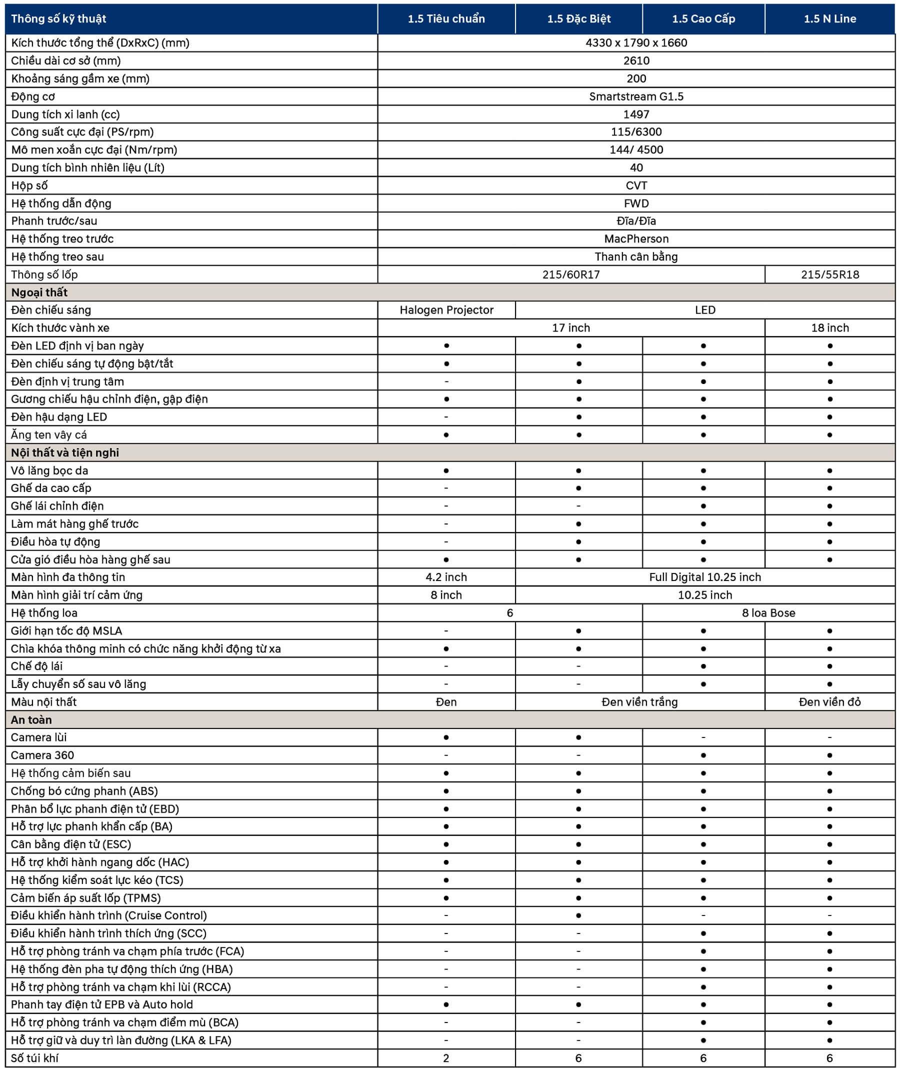 Bảng thông số kỹ thuật xe Hyunda Creta 2025.