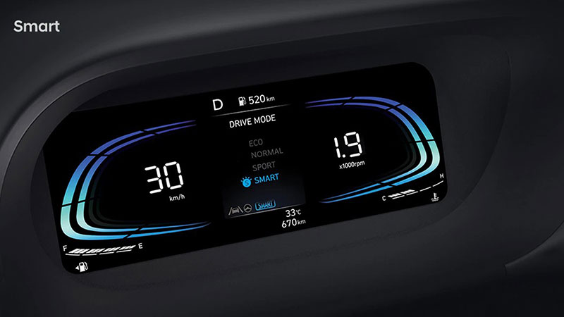 Hyundai STARGAZER X có bốn chế độ lái. Normal cho việc lái xe hàng ngày, Eco tiết kiệm nhiên liệu, Sport để vận hành xe tối đa và Smart để điều chỉnh khoảng thời gian chuyển số tự động dựa trên kiểu lái xe.