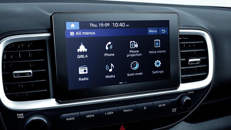 Hyundai Venue mang đến các tính năng hiện đại hàng đầu phân khúc như cửa gió cho hàng ghế sau, cửa sổ trời chỉnh điện, đèn chiếu sáng tự động bật tắt, màn hình giải trí 8 inch, màn hình thông tin kỹ thuật số.
