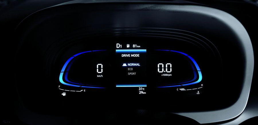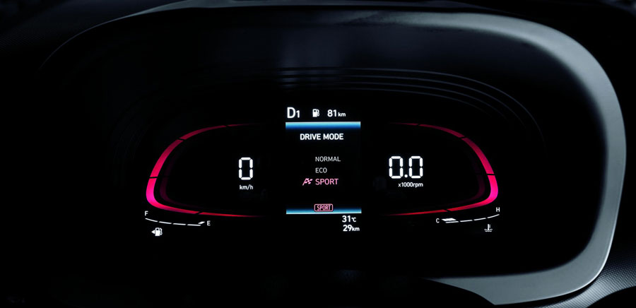 Hyundai Venue được trang bị Drive Mode 3 chế độ lái Normal – Eco – Sport, hệ thống sẽ trực tiếp can thiệp vào các hệ thống truyền động của xe: vô lăng, hộp số, chân ga,… nhằm tạo ra sự khác biệt về cảm giác lái cũng như khả năng hoạt động của xe